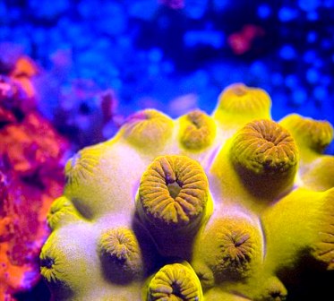 මේ තවත් කොරල් සතෙක්. සමුදුරු ජීවීනේගේ ජෛවප්රතිදීප්ත ලක්ෂණ මෙසේ දැක ගත හැකි වූයේ පාරාජම්බුල ආලෝක ධාරා එල්ල කිරීමෙන් පසුවයි.